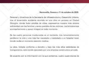 Ciudad Obregón, Sonora.– El Gobierno Municipal de Cajeme expresó su más profundo pesar y solidaridad con las familias de las personas que perdieron la...