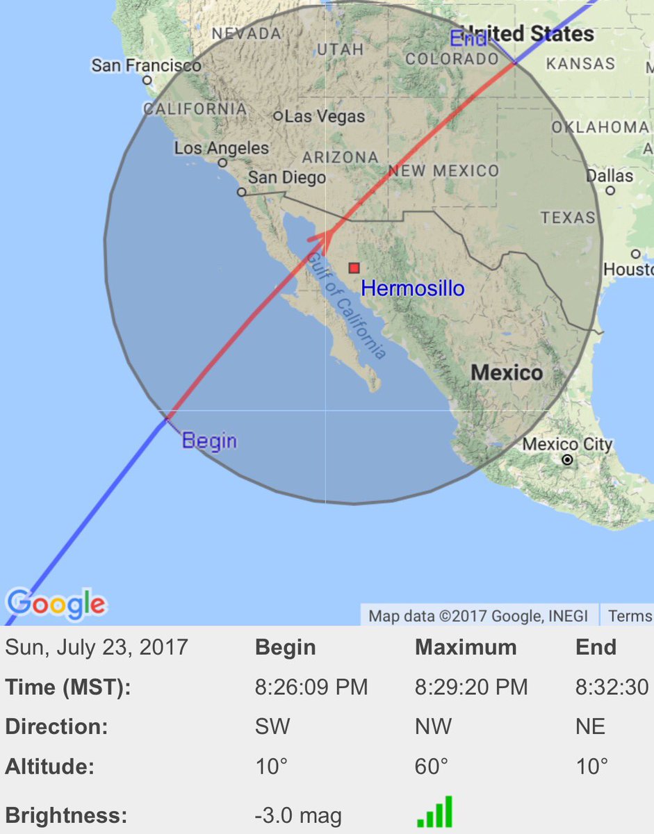 El día de hoy a las 20:28 horas será visible la Estación Espacial Internacional o también conocida por sus siglas como EEI, misma que se alcanzara a ver primeramente en el estado de Sonora para posteriormente seguir su trayecto teniendo como otro punto importante a ser vista en la ciudad de Tucson en el estado de Arizona.