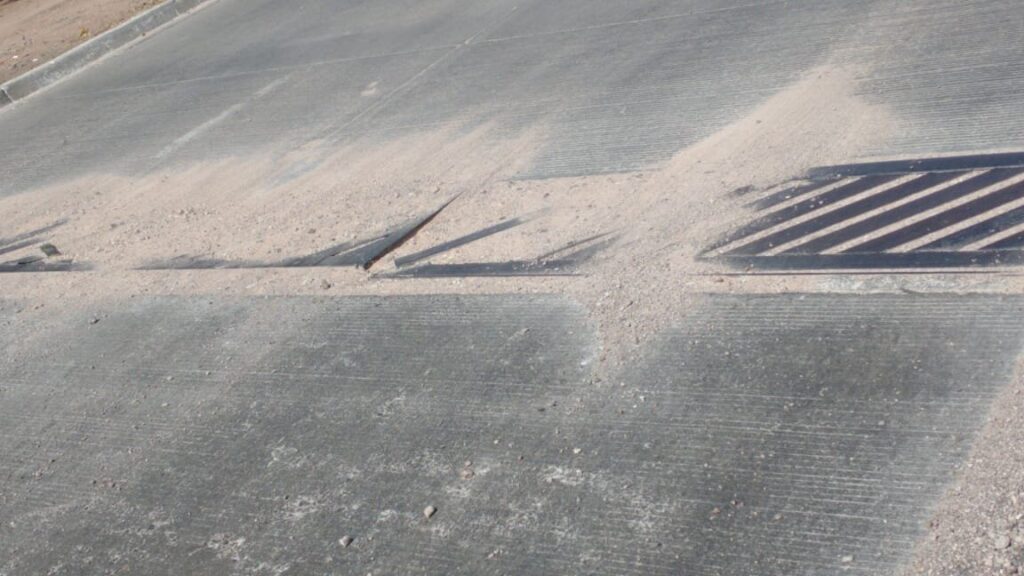 Tapan las rejillas con arena en vez de arreglarlas en bulevar del parque industrial.