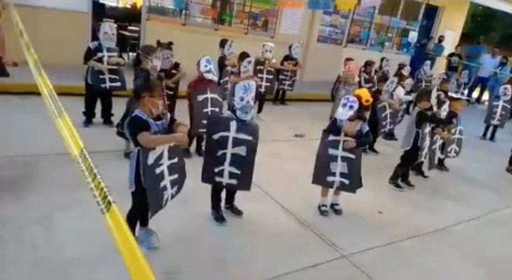 El niño que aparece en el video se hizo viral en TikTok, luego de quedarse dormido a mitad del patio en pleno bailable escolar de Día de Muertos.