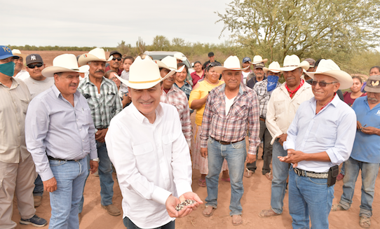 Una vez terminado el encuentro, Durazo Montaño se dirigió a un campo de cultivo experimental, donde habitantes de Loma de Bácum han emprendido un proceso de siembra de maíz azul; ahí el mandatario reafirmó el compromiso con este pueblo originario, ayudando en la siembra manual junto a los demás miembros de la comunidad.