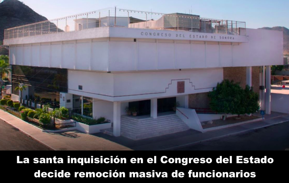 Constituido en Tribunal del Santo Oficio e inquisidor general al estilo de Tomás de Torquemada, la mayoría calificada de la 63 Legislatura de Sonora, aplicó unilateral decisión y con el respaldo de una ley aprobada por ellos mismos, despidió a 15 funcionarios de confianza del Congreso del Estado sin otorgar elemental derecho de audiencia o a la defensa.
