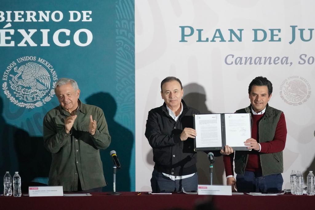 Durante la presentación del “Plan de Justicia para Cananea”, que encabezó el presidente Andrés Manuel López Obrador, se firmaron dos convenios: el primero, entre el director general del IMSS, Zoé Robledo, y el gobernador de Sonora, Alfonso Durazo Montaño, mediante el cual el gobierno del estado transfiere en donación el Hospital General ubicado en este municipio, a fin de que el Seguro Social se haga cargo de su operación. El segundo, entre el IMSS y las secretarías de Gobernación, Trabajo y Previsión Social con Grupo México, a favor de los extrabajadores mineros de Cananea.