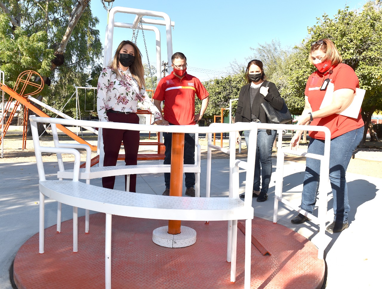 La Cadena Comercial Oxxo entregó a la Coordinación de Infraestructura, Desarrollo Urbano y Ecología (CIDUE) la rehabilitación y adaptación del Parque Fátima como incluyente e integrador, para que los adultos mayores y niños con discapacidad puedan ejercitarse.