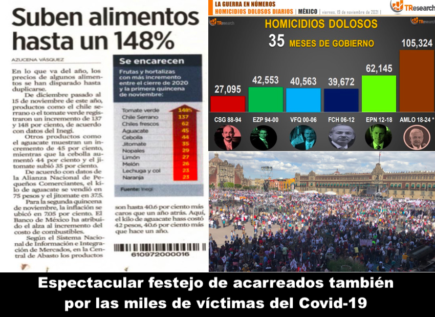 A poco será motivo de fiesta y de reconocimiento el que en solo tres años haya en el país cuatro millones de pobres más; que la inflación y el costo de la vida escale a niveles no vistos desde 1994, que no haya expectativas de crecimiento económico para los próximo dos años; que la corrupción oficial siga tan rampante como siempre, incluida en la familia presidencial; que desde la cúpula del poder se promueva y se estimule el clasismo y la confrontación social, y que México sea frecuente objeto de mofa a nivel mundial por los dislates y estupideces del presidente.