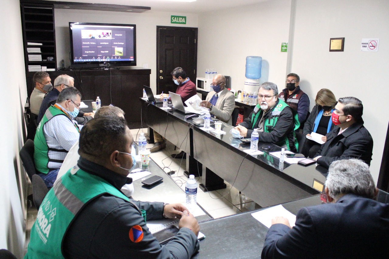 Los funcionarios, en representación del coordinador estatal, Juan González Alvarado, se reunieron con personal del Departamento Geológico de los Estados Unidos y del Programa de Asistencia Humanitaria del Comando Norte, perteneciente al Departamento de Defensa del gobierno estadunidense, en el edificio de la Comisión Internacional de Límites y Aguas entre México y Estados Unidos.