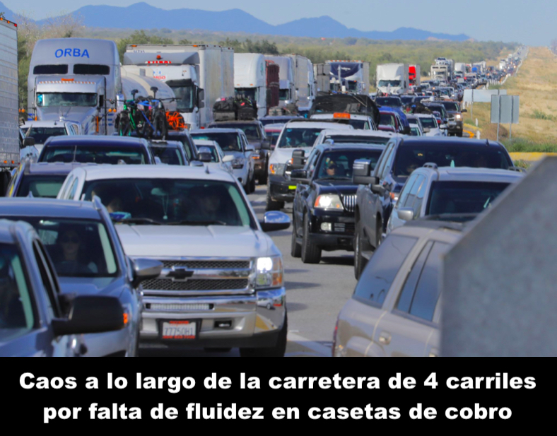 Para los que vienen a Sonora y norte de Sinaloa, no tienen de otra, ya que les resulta ineludible soportar las kilométricas sucesivas filas desde el mismo cruce fronterizo a México; la burocracia en el trámite para la exportación temporal del vehículo; el acoso de policías municipales de los municipios en tránsito; otras largas filas en las casetas de cobro por el anacrónico sistema de pago que implica además la argucia de la carencia de moneda fraccionaria y sólo aceptar moneda nacional.