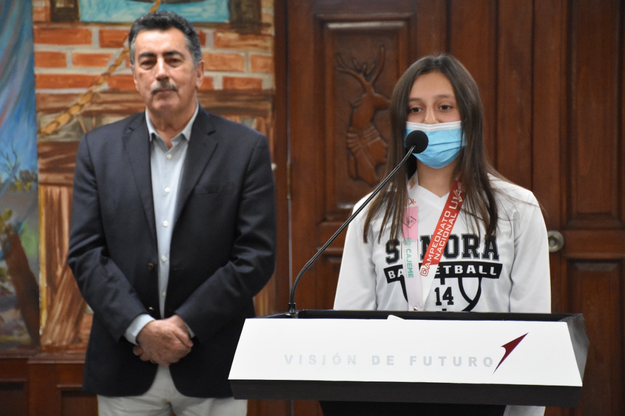 Por haber representado dignamente a Cajeme y hacerse acreedoras al segundo lugar a nivel nacional de la Liga Ademeba de Basquetbol Femenil, con sede en esta ciudad los días 10, 11 y 12 de diciembre pasado, el Alcalde Javier Lamarque Cano entregó un reconocimiento a Carolina Borbón Alvarado y Camila Corral Morales, de 14 años de edad y quienes pertenecen a la Selección Sonora.