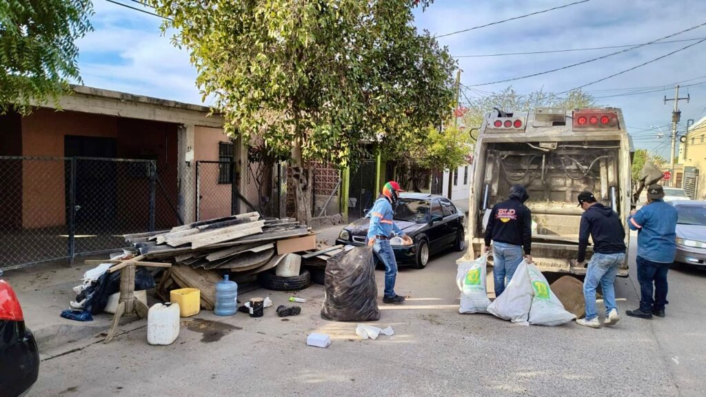 Como parte de las acciones de limpieza que el Ayuntamiento de Hermosillo implementa, personal de Servicios Públicos Municipales retiraron 9 toneladas de desechos durante la jornada de descacharre en la colonia Jacinto López.