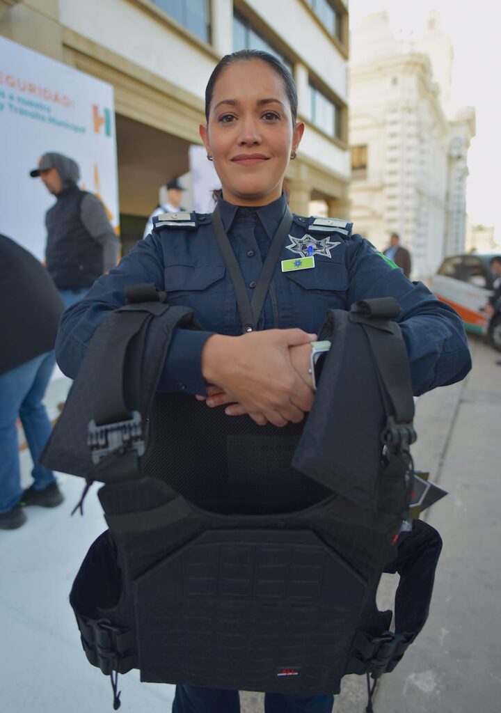 A nombre de sus compañeras y compañeros, la policía María del Rosario Valenzuela Vallejo agradeció el equipamiento y apoyos diversos recibidos en los últimos 3 años. “Hoy que recibimos estos chalecos los vamos a portar con dignidad cuando salgamos a las calles a servir y proteger a nuestros ciudadanos”, aseguró.