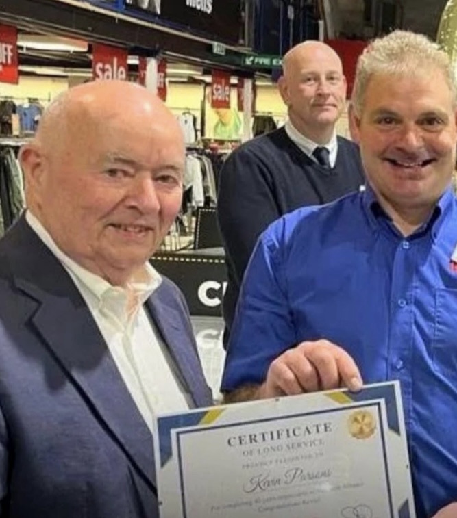 Guernsey. – Kevin Parsons, un empleado de 56 años del supermercado Alliance, fue homenajeado de una manera muy particular: con 40 rollos de salchicha, uno por cada año de servicio. La celebración marcó las cuatro décadas que Parsons ha dedicado al establecimiento, desde que comenzó en 1984.