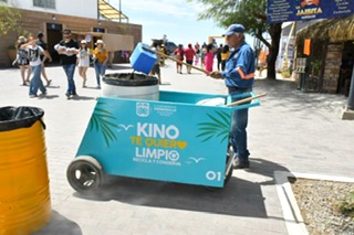 Personal de Servicios Públicos Municipales realiza actividades para fomentar la cultura del reciclaje durante el periodo vacacional en Bahía de Kino.
