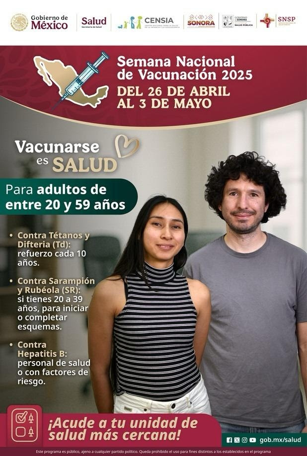 La dependencia reiteró que las vacunas son completamente seguras y no tienen ningún costo, por lo que invitó a madres, padres, tutores y a toda la población a no dejar pasar esta oportunidad para protegerse y proteger a sus seres queridos.