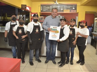 El presidente municipal Antonio Astiazarán Gutiérrez, colocó la placa distintiva a la Taquería Los Sureños, ganadora del mejor taco de pastor en trompo en el pasado Taco Fest, cuyos colaboradores destacaron el aumento de sus comensales desde que se realizó el evento en una Víactica.