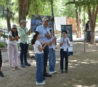 Toño Astiazarán acompañado por Sergio Pavlovich Escalante, director de Servicios Públicos Municipales y de Zarina Rochín, presidenta; Samantha Enriquez, Síndica y Rodrígo Martínez, Secretario de Cabildo Infantil; agradeció a nombre de la ciudadanía este distintivo que compromete al Municipio a continuar por la ruta de la arborización cuya meta es plantar 200 mil especies al concluir la administración con la finalidad de contrarrestar los efectos del cambio climático.