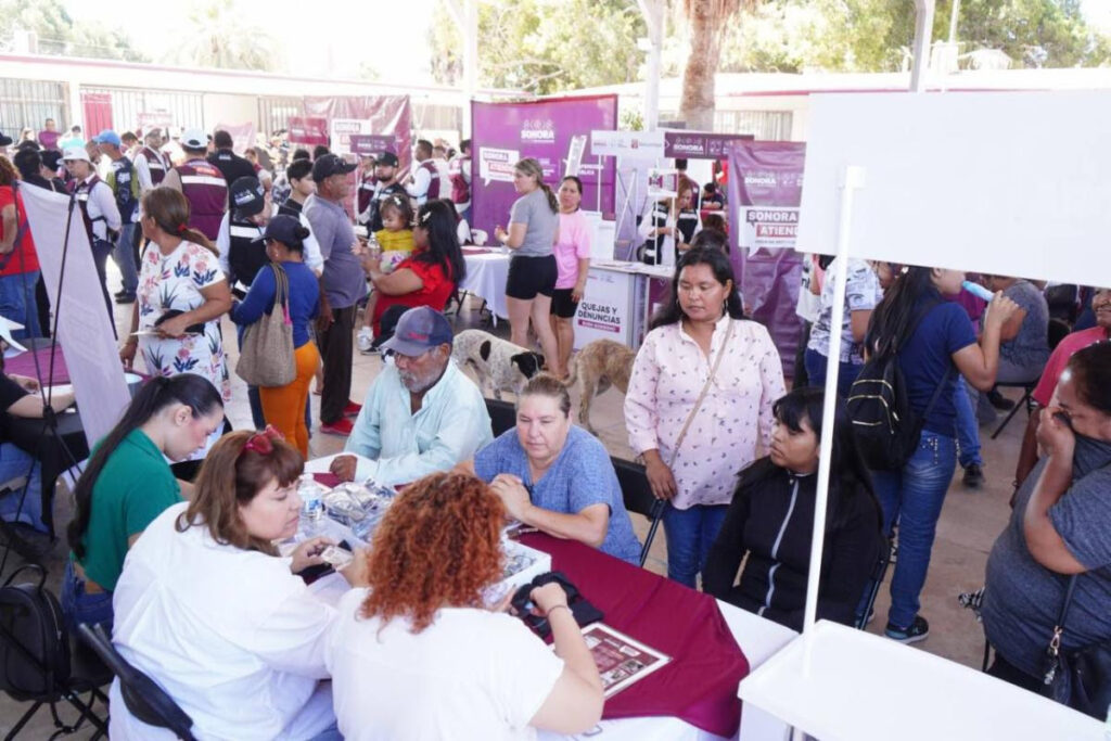 De manera gratuita las familias en Bahía de Kino accedieron a servicios de registro civil; juventud y deporte; educación y trabajo; protección animal; salud y bienestar; medio ambiente; asistencia; vivienda, entre otros.