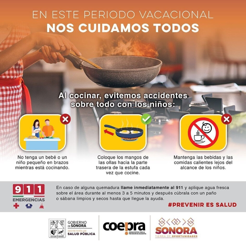 Durante el periodo vacacional es más común que niñas y niños permanezcan por más tiempo en casa, por lo que el Gobierno de Sonora, a través de la Secretaría de Salud (SSP), hizo un llamado a madres, padres y personas cuidadoras a reforzar las medidas de prevención para evitar accidentes en el hogar.