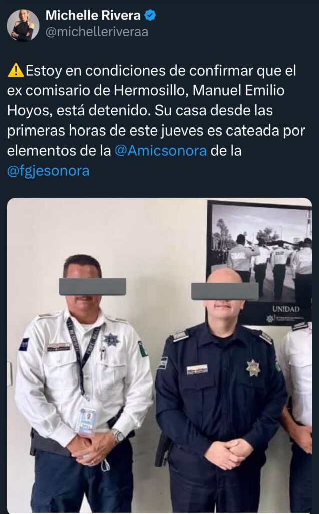 La mañana de este jueves se desplegó un amplio operativo en un fraccionamiento residencial de Hermosillo, en el que fue asegurado el excomisario Manuel Emilio Hoyos, junto con varios exelementos de la corporación policial que estuvieron cercanos a su mando.