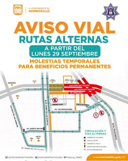 “Toda esta información que les estamos dando a conocer el día de hoy pueden consultarla en las redes sociales de la Dirección de Infraestructura del presidente municipal, Antonio Astiazarán, y también de Hermosillo Gob para que estén más actualizados y para que esté más entendible son los mapas de las nuevas rutas alternas”, expuso la funcionaria.