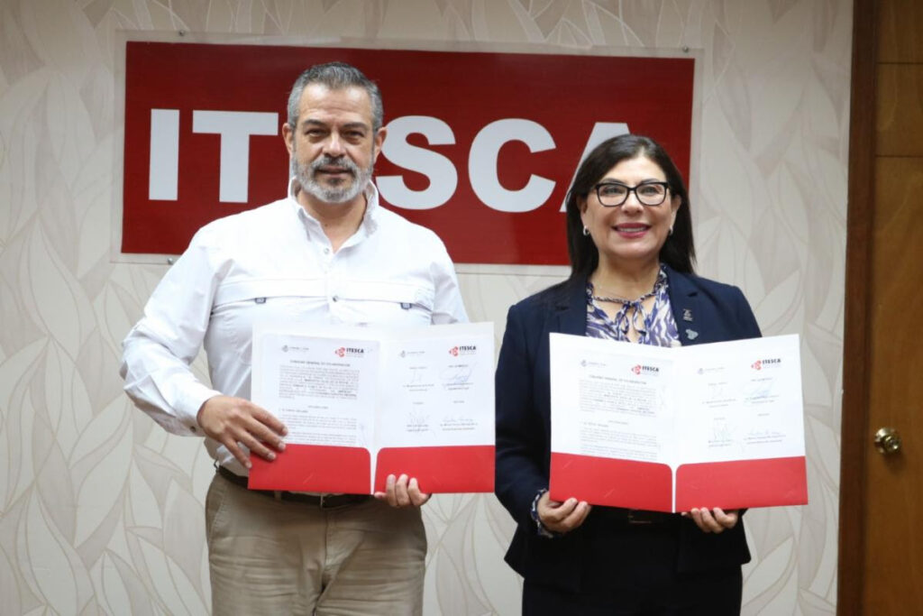 Margarita Vélez de la Rocha, directora general de Itesca y Fernando Cardoso Becerril, representante legal de Sonora S. Plan S. de R.L. de C.V., firmaron el documento donde se establecen objetivos específicos de colaboración en beneficio del alumnado.