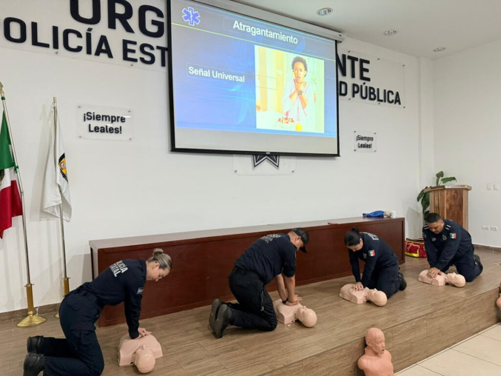 Oficiales de la PESP mejoran sus prácticas para atender emergencias y brindar apoyo de manera efectiva, por lo que reciben formación como brigadistas en temas de primeros auxilios, combate de incendios, evacuación, búsqueda y rescate, en la base operativa de la corporación en Hermosillo, por parte de personal especializado.