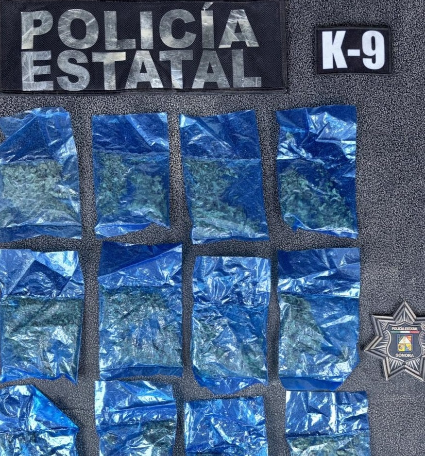 Binomios K-9 de la Policía Estatal detectan narcótico en Hermosillo*