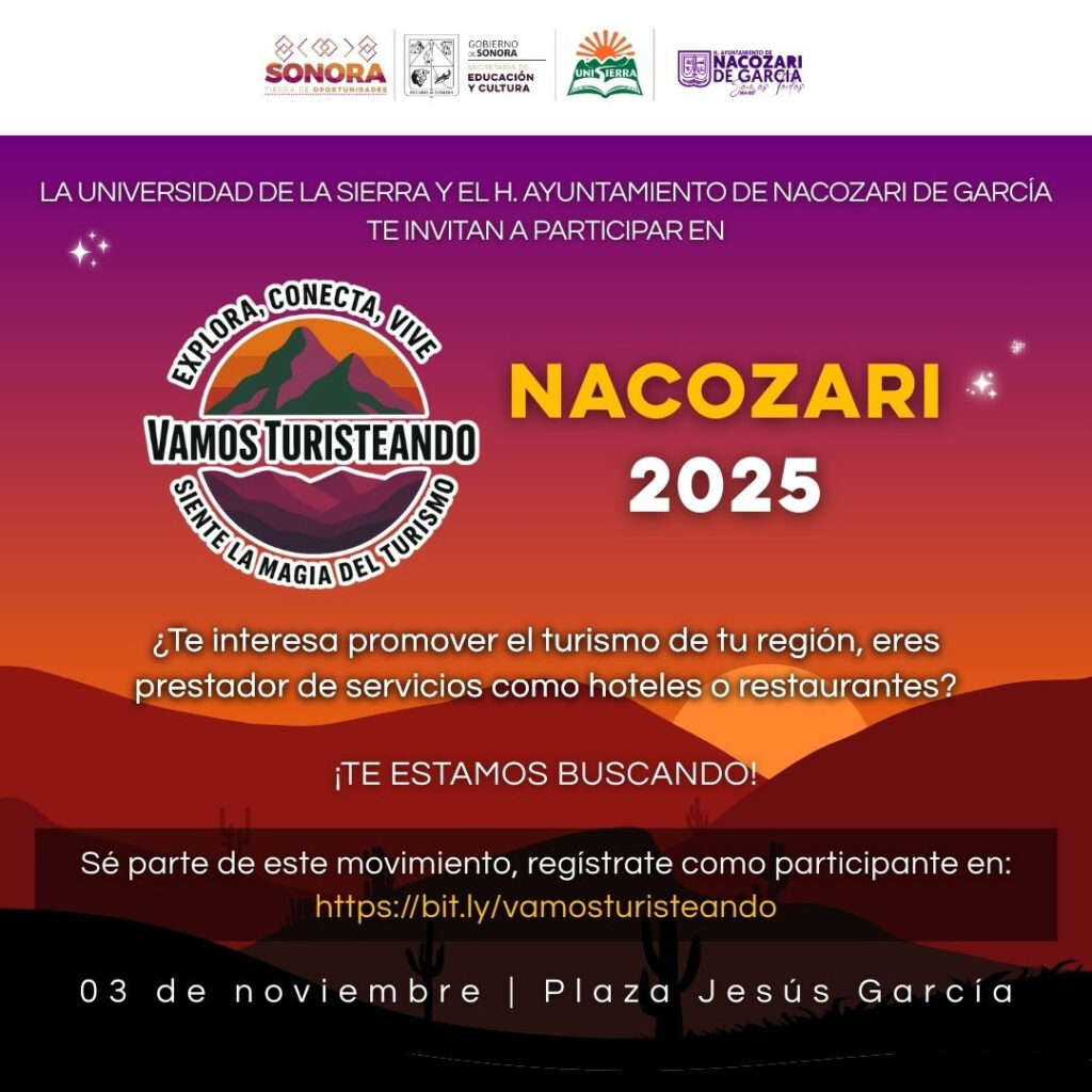 La iniciativa, promovida por los Embajadores Universitarios del programa educativo de la Licenciatura en Turismo, cuenta con el apoyo del Ayuntamiento de Nacozari de García y está orientado a fortalecer el turismo regional en la sierra sonorense.