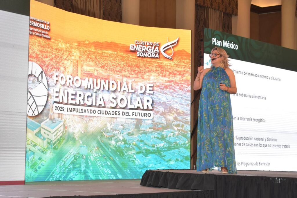 La titular del Sector Energía dentro de la Secretaría de Economía de México, Diana León, agradeció la oportunidad de promover entre las personas asistentes al Foro Mundial de Energía Solar de Hermosillo la marca “Hecho en México” e informar que tienen oportunidad de gestionarla para distinguir en el mundo sus productos y servicios.