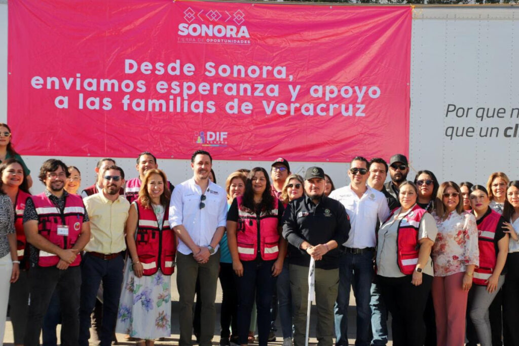 El Gobierno de Sonora, a través de la Coordinación Estatal de Protección Civil (CEPC), participó en el banderazo de salida de un camión que transporta cerca de 20 toneladas de víveres para los damnificados por las lluvias en Veracruz.