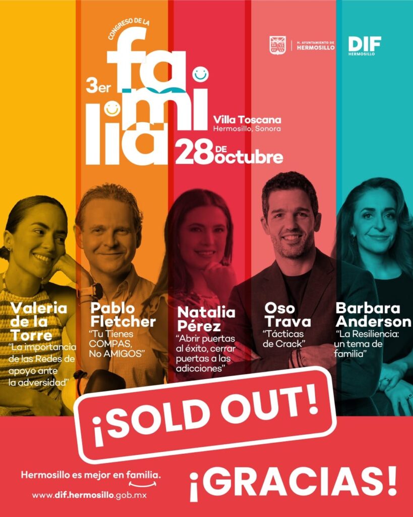 Hermosillo está listo para celebrar el Tercer Congreso de La Familia el próximo martes 28 de octubre, expresó Madeleine Bonnafoux Alcaraz, directora general de DIF Hermosillo sobre esta tercera edición que contará con ponencias sobre resiliencia, liderazgo personal, prevención de adicciones, entre otros.