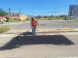 Con el propósito de mejorar las condiciones de movilidad y seguridad vial, el Ayuntamiento de Hermosillo, a través de la Dirección General de Desarrollo de Infraestructura continúa los trabajos de mantenimiento de vialidades con labores de bacheo en diversos sectores de la ciudad.