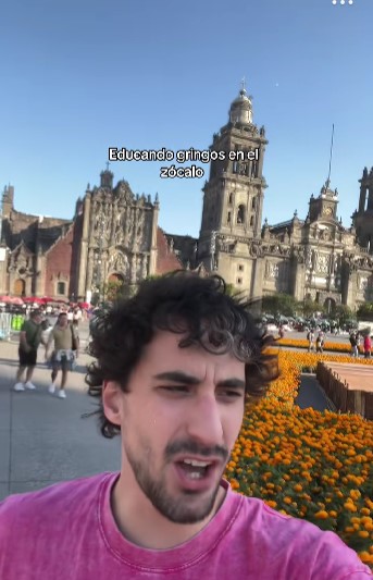 En el video, que rápidamente acumuló miles de reproducciones en TikTok, se ve a Juan Pablo caminando por el Zócalo mientras se escucha de fondo a un grupo de turistas estadounidenses expresar su admiración por la festividad:
