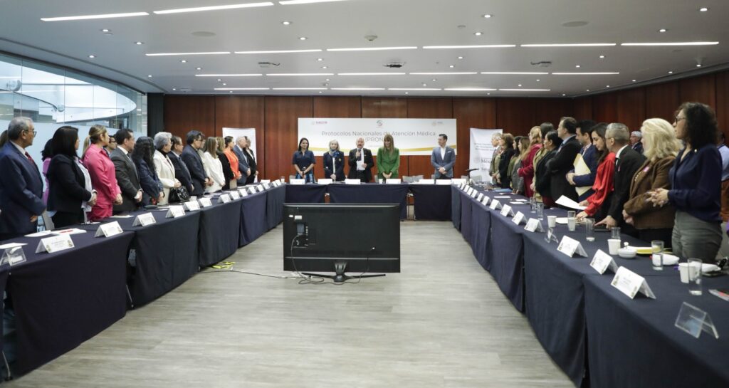 Con la presentación de este protocolo, dijo, estamos dando un paso firme hacia la transformación del sistema de salud en México, un sistema centrado en las personas, en la prevención y en la excelencia clínica.