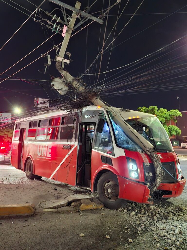 Un incidente en el transporte público encendió las alertas la noche de este miércoles, luego de que un camión urbano del sistema operado por el Instituto de Movilidad y Transporte para el Estado de Sonora se estrellara contra un poste de la Comisión Federal de Electricidad (CFE) en la colonia Emiliano Zapata.