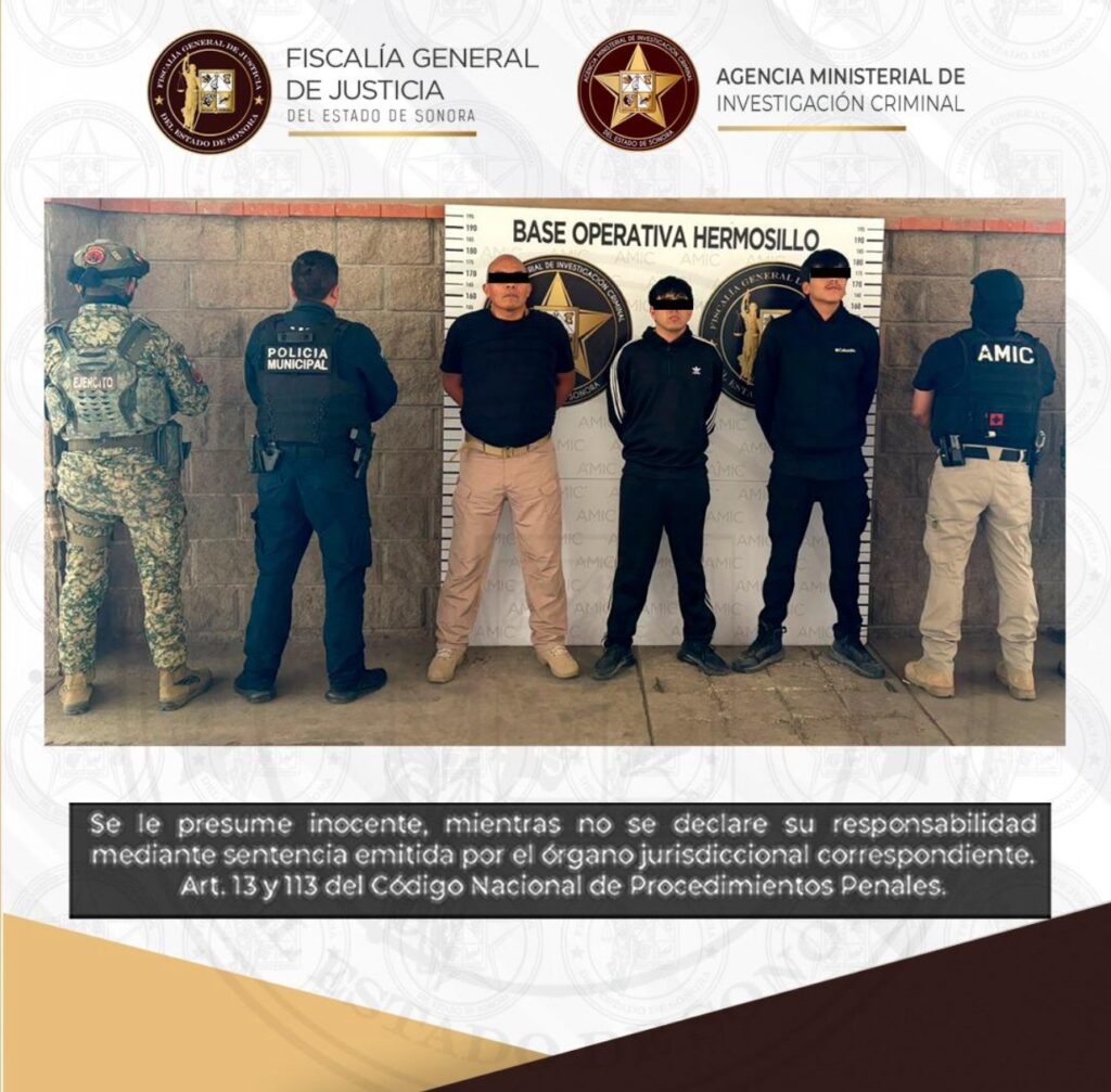Su captura tuvo lugar el pasado 19 de noviembre en una acción coordinada entre la Agencia Ministerial de Investigación Criminal (AMIC), la Secretaría de la Defensa Nacional (DEFENSA), la Policía Estatal de Seguridad Pública (PESP) y la Policía Municipal de Hermosillo en la calle Guadalupe Victoria y Periférico Norte, en la colonia Jesús García.