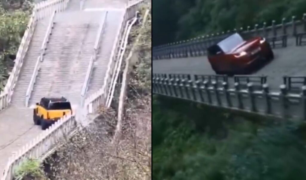 El vehículo intentó subir la famosa ‘Escalera al Cielo’ (Stairway to Heaven) del Monte Tianmen, en China, compuesta por nada menos que 999 peldaños.