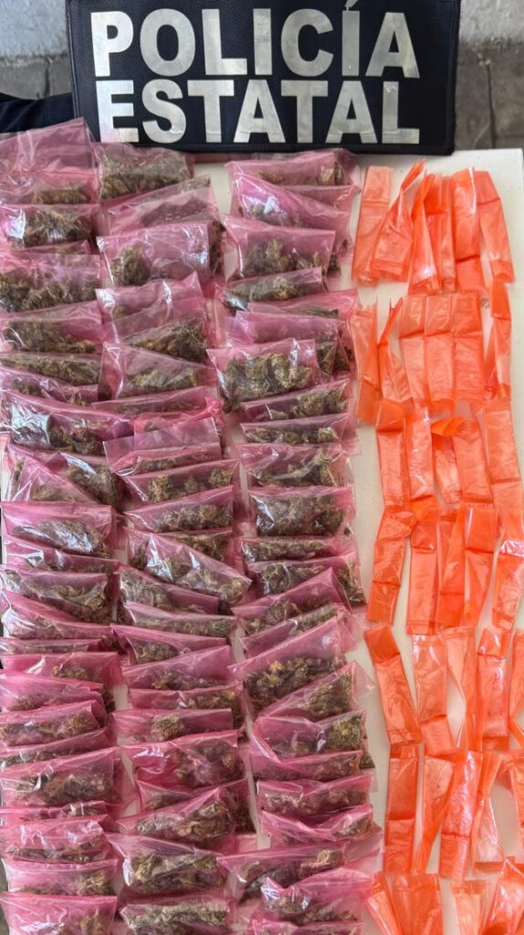 Posteriormente, en el sector Las Villas, la Policía Estatal detuvo a Carlos “N”, de 33 años por posesión de 118 envoltorios con sustancia prohibida, 38 de ellos con materia granulada y el resto hierba verde.