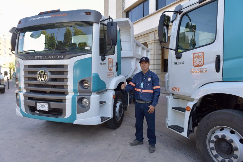 Las acciones de mantenimiento a vialidades y limpieza que diariamente realiza el Ayuntamiento de Hermosillo se verán reforzadas, destacó Antonio Astiazarán al entregar dos camiones de volteo y una petrolizadora que no solamente fortalece la labor operativa de dichas áreas sino las dignifica.