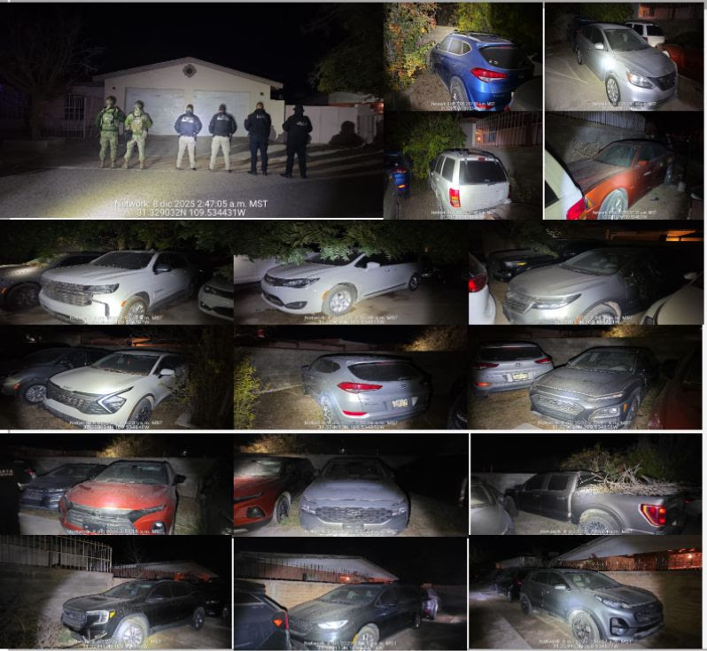 El operativo se realizó a las 2:40 de la madrugada del lunes 8 de diciembre, derivado de una diligencia de cateo solicitada por la Fiscalía General de Justicia del Estado de Sonora, en coordinación con las corporaciones que integran el Gabinete de Seguridad del Estado. Entre las unidades aseguradas se encuentran camionetas de reciente modelo, vehículos de alta gama y unidades con modificaciones especiales de blindaje.