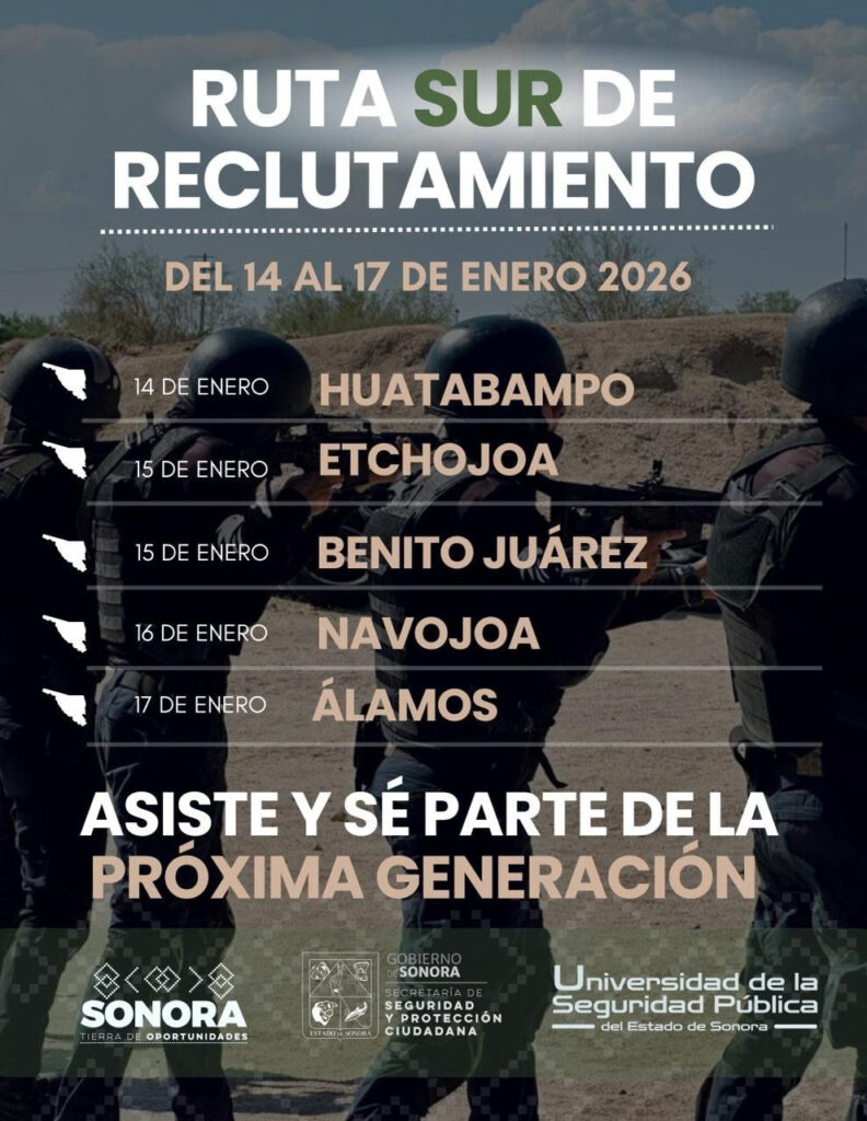Con el objetivo de convocar a jóvenes sonorenses a formarse como Policía de Proximidad, la Universidad de la Seguridad Pública (USP) iniciará la ruta de reclutamiento 2026 en municipios del sur de la entidad, informó Ellioth Romero Grijalva.