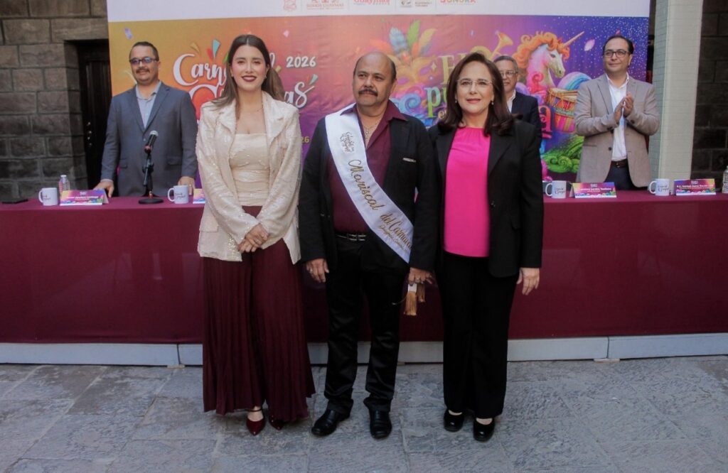 El organizador, el Ayuntamiento de Guaymas, encabezado por la doctora Karla Córdova, realizó el pasado viernes en el patio de Palacio Municipal, la presentación del programa del Carnaval 2026 “El pueblo está de fiesta”, que se realizará del 12 al 17 de febrero.