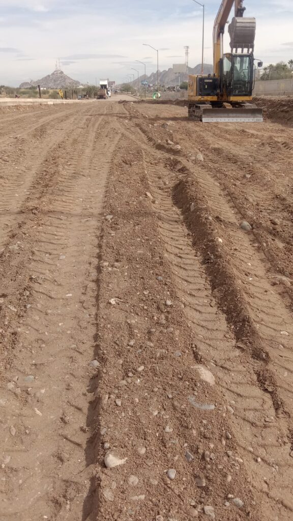 Actualmente, los trabajos se concentran en la colocación de los rellenos faltantes, que consisten en complementar la subrrasante, Sub-base, base y carpeta asfáltica, materiales que requieren suministrarse de Banco para garantizar su correcta aplicación.