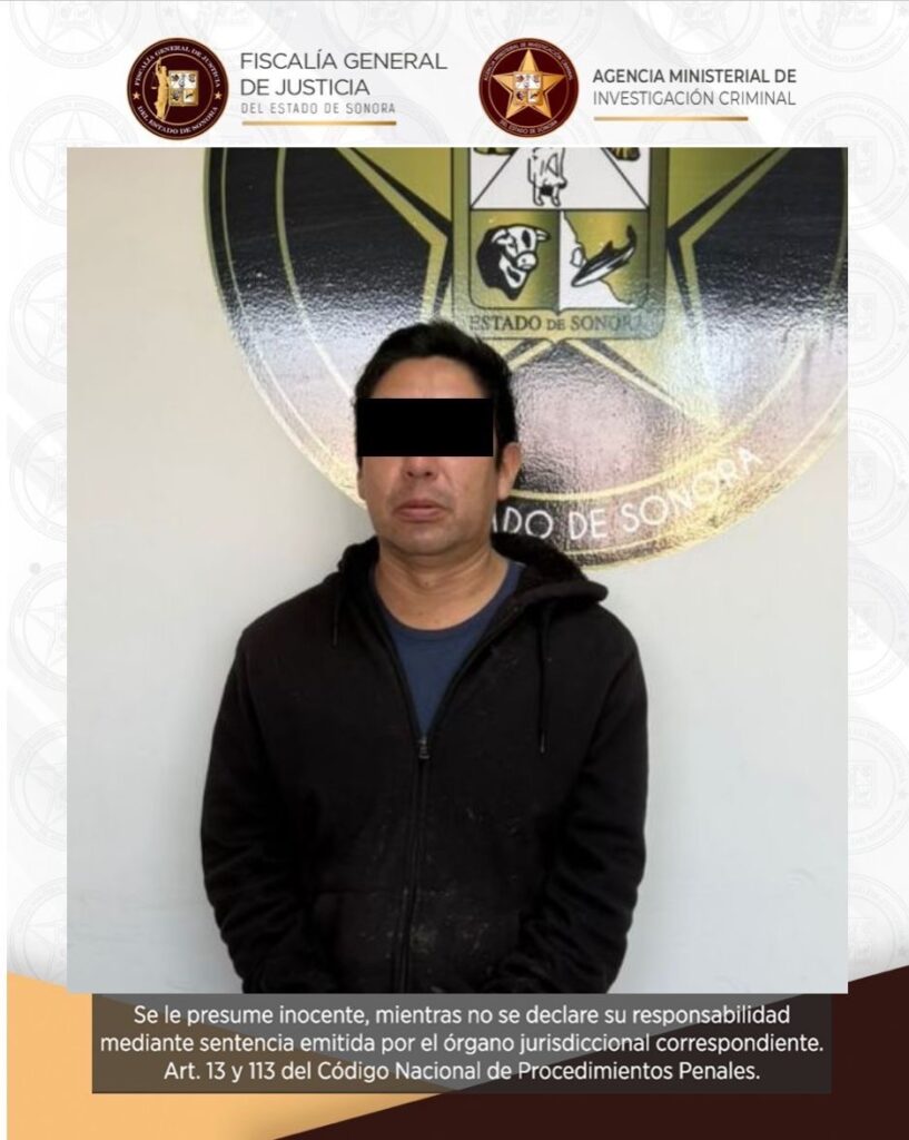 La diligencia judicial fue debidamente ejecutada por elementos ministeriales en la comisaría Miguel Alemán, en Hermosillo, Sonora, donde fue detenido Luis Alberto “N”, de 45 años de edad, de ocupación jornalero, quien contaba con una orden de aprehensión vigente.