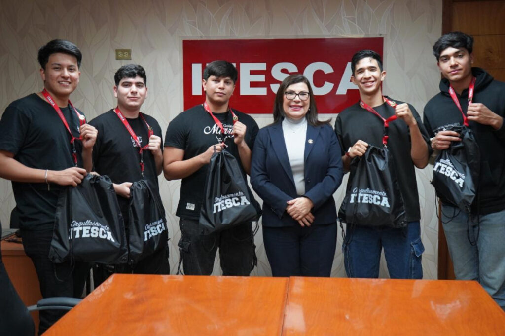La directora general del Itesca, Margarita Vélez de la Rocha, entregó reconocimientos a los integrantes del equipo, así como al docente asesor, Adrián Lizárraga, por su destacada participación y talento en la liga no-oficial de e-sports de las universidades afiliadas al TecNM.