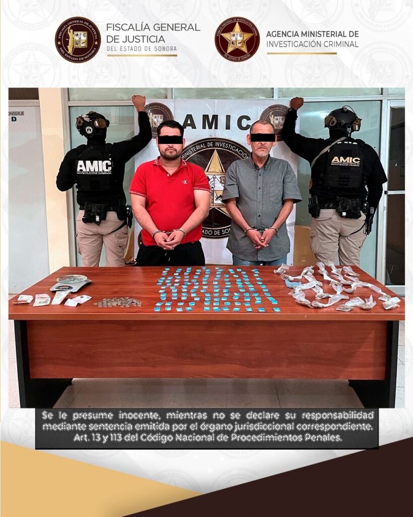 Altar, Sonora, 5 de febrero de 2026.- Durante la continuación de la audiencia inicial de control de detención, la Fiscalía General de Justicia del Estado de Sonora (FGJES) obtuvo la vinculación a proceso de Rubén Francisco “N”, de 32 años, y Félix Aurelio “N”, de 56, por su probable responsabilidad en el delito contra la salud en su modalidad de narcomenudeo, en la variante de posesión de metanfetamina y marihuana con fines de comercio, en Altar.