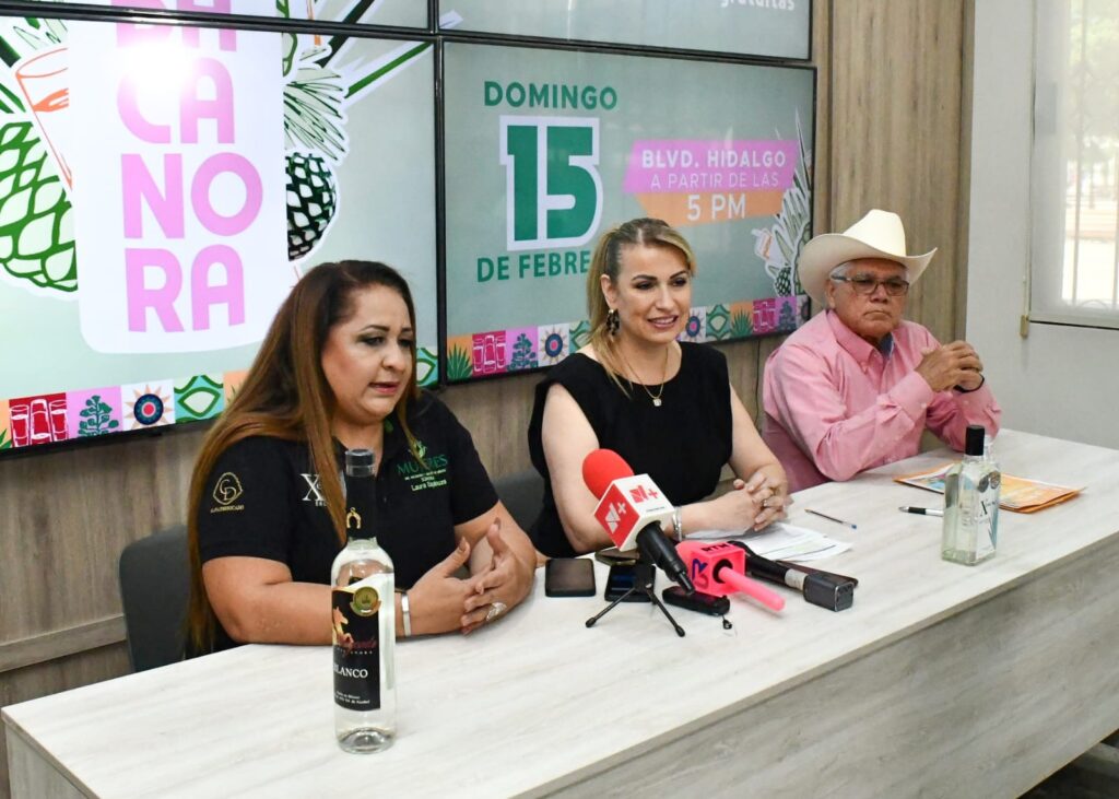 La directora de Desarrollo Turístico de la Agencia Municipal de Desarrollo Económico (AMDE) ofreció detalles del evento acompañada por Laura Espinoza, presidenta de la Asociación de las Mujeres del Bacanora y Maguey de México en Sonora y José Osvaldo Coronado, productor y propietario de la marca Siete Coronados.