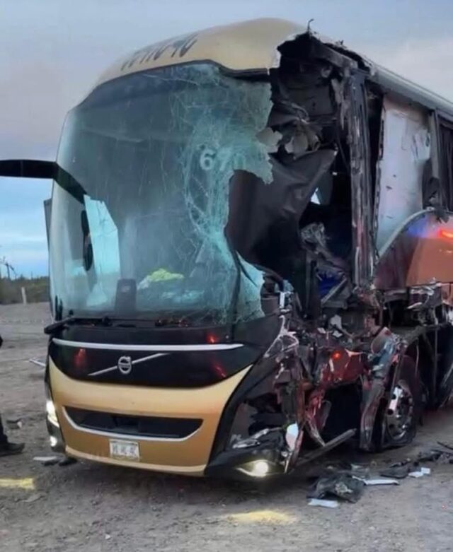 Sonora.– Autoridades estatales y corporaciones de auxilio mantienen un operativo de atención tras el fuerte accidente registrado este viernes en la carretera federal Sonoyta–Caborca, a la altura del kilómetro 17-18, donde un autobús de pasajeros de la línea Tufesa colisionó contra un tractocamión.
