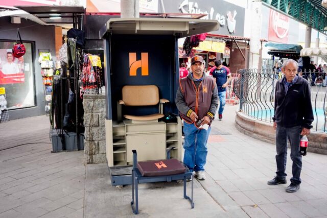 Quienes viven del oficio de aseo de zapatos en el bulevar Hidalgo y Mercado Municipal, recibieron de parte del presidente municipal Antonio Astiazarán una estación de trabajo digna y funcional, así como equipamiento que los distingue como Boleros de la H.