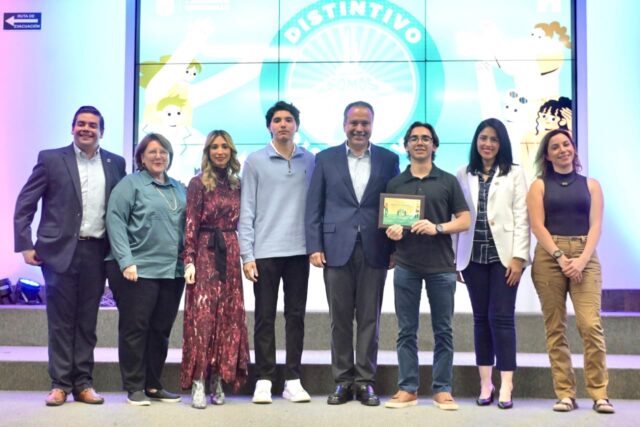 El presidente municipal, acompañado por Franco Villaescusa Carrillo, director del Instituto Hermosillense de la Juventud (IHJ), y la regidora Ana Paula Villalvazo Carrillo, encabezó la entrega del Distintivo Somos H en las instalaciones del Tecnológico de Monterrey, Campus Sonora Norte, en el marco de este primer encuentro que reunió a jóvenes líderes estudiantiles.