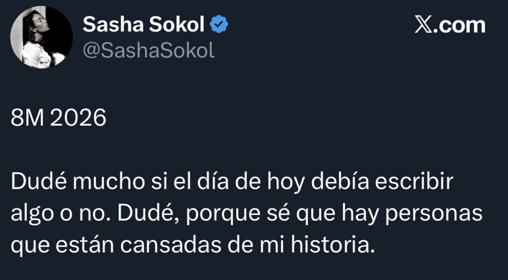 A través de un mensaje difundido en redes sociales este 8 de marzo de 2026, Sokol recordó que hace cuatro años denunció públicamente al productor y que, tras ganar las dos primeras instancias legales, el caso llegó a la Suprema Corte de Justicia de la Nación (SCJN), que determinó que De Llano debía emitir una disculpa pública y pagar una compensación económica destinada a una institución de defensa de menores.